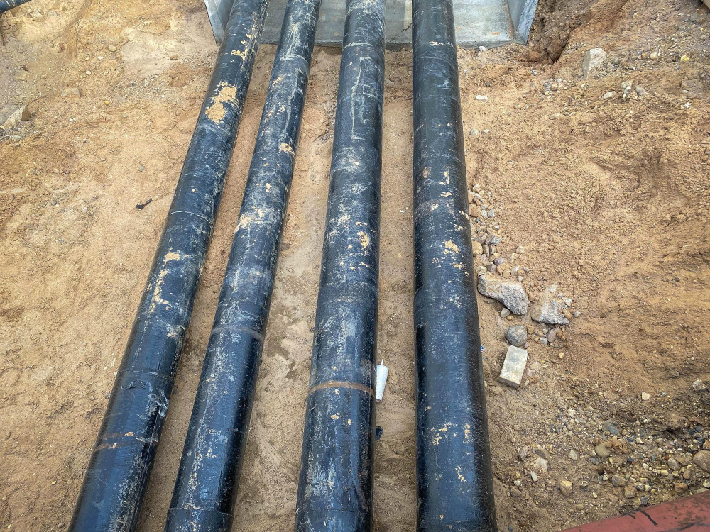 Для прокладки в футлярах могут использоваться трубы с кольцевыми бандажами — они необходимы для предотвращения повреждения полиэтиленовой оболочки вследствие тепловых подвижек. Бандажи представляют собой двухслойные кольца, и изготавливаются из полиэтиленового материала. Возможно изготовление бандажей из термоусаживаемых муфт.